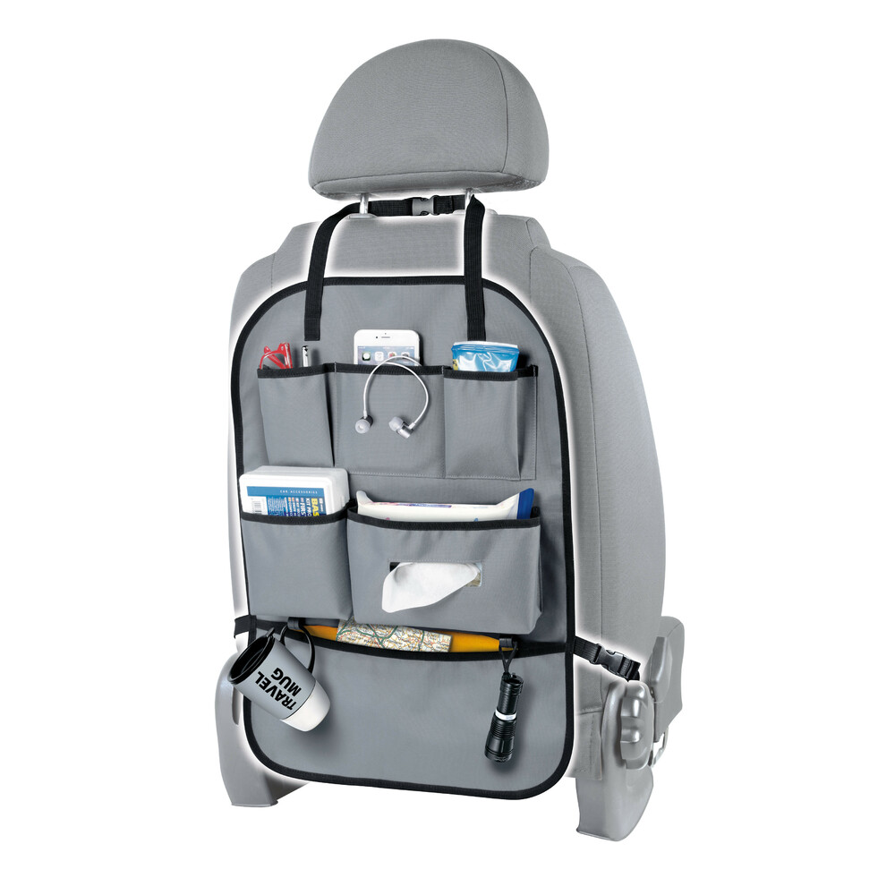 See policies- Système de fixation à boucle réglable pour un rangement facile à installer sur la plupart des dossiers de siège de voitures, de VUS et de fourgonnettes.